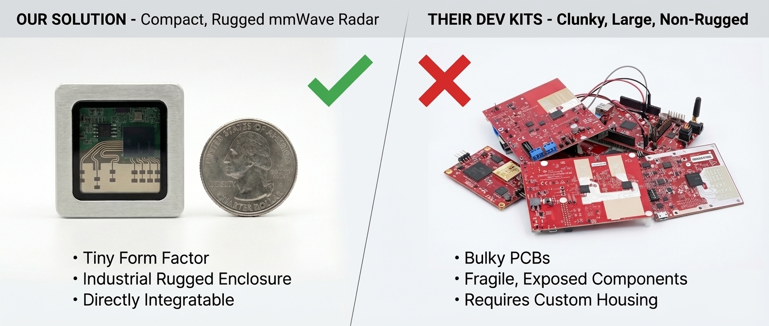 No RF design, antenna tuning, or radar signal processing expertise is required, which significantly reduces development time compared to traditional radar solutions.